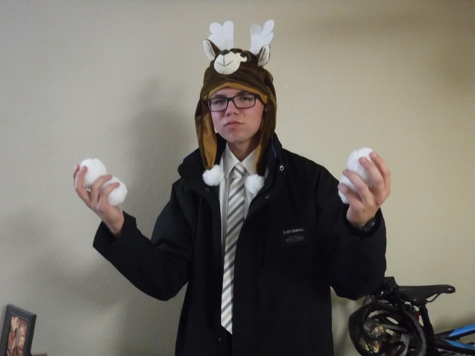 - The reindeer hat was already at the apartment so I decided to take a picture with it. Me and Elder Olson are gonna be taking Christmas pictures for letters to send back home and what not so just hopefully I can get those done so I can send those soonish. Elder Olson loved those peppernuts and so did my Zone Leaders Elder Richins and Elder Akers